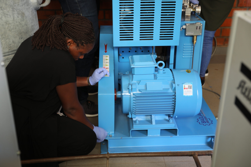 The Training Center is more than a classroom – it’s a hands-on, fully equipped environment, featuring a functioning pressure swing adsorption (PSA) plant, high-pressure oxygen booster compressors, and critical infrastructure upgrades made in partnership with Rwanda Polytechnic. Each component supports a broader vision: enabling healthcare personnel to understand, operate, and maintain complex biomedical systems independently.