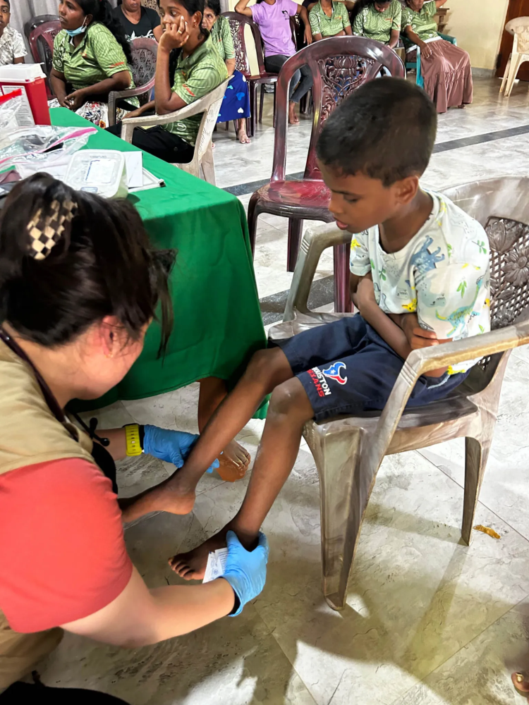 When the team walked through the streets of a village or town, she said, they were frequently flagged down by people with a sick or immobile family member at home. One woman approached the team at a medical camp, asking them to visit her mother, who was confined to bed and had severe bedsores. Both mother and daughter had been washed away from their home in the floods – the older woman with very limited mobility. “It’s pretty much a miracle she survived,” Fernando-Rubera said. “Natural disasters really impact the most vulnerable, and oftentimes that is the elderly or children.”