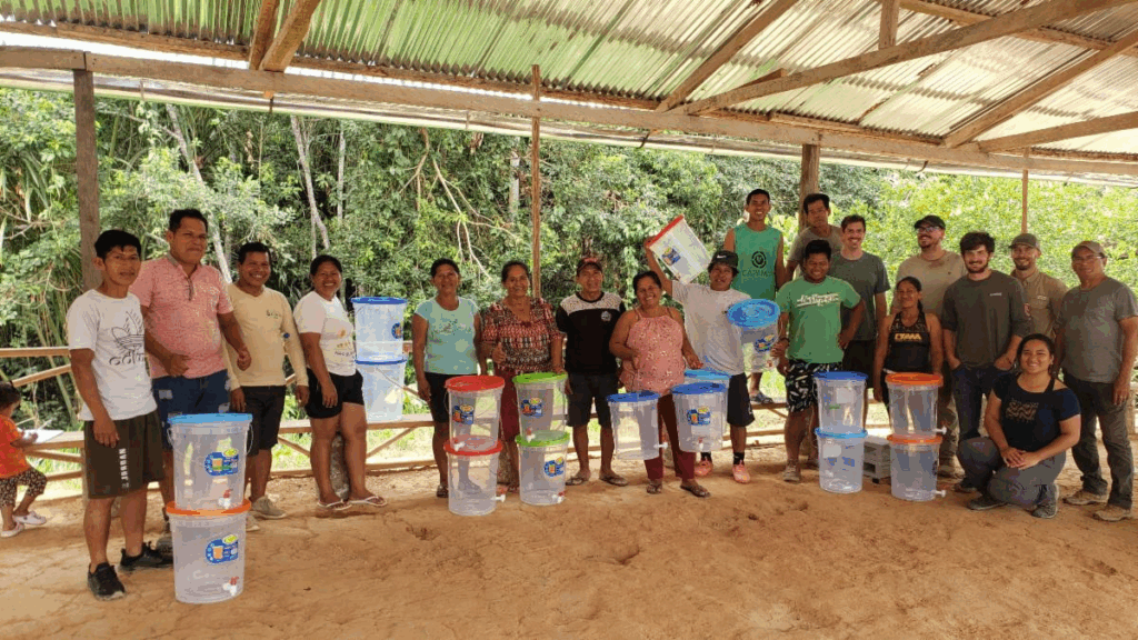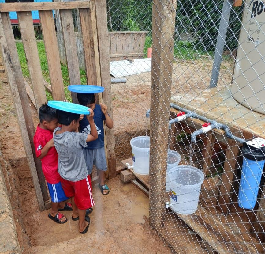 The community is made up of 19 families of Kukama and Achuar ethnic origin. Approximately a year-and-a-half ago, they heard about and saw the potable rainwater catchment systems that Amazon Promise and Engineers Without Borders have built in the region, but they didn’t know how to contact us to request humanitarian aid with drinking water. During the dry season, the people suffered greatly from the lack of clean water for their daily consumption. They drank water from a stream, which in the summer turned green and smelled bad, but it was all they could drink, which led to constant stomach illnesses and parasitic infections.