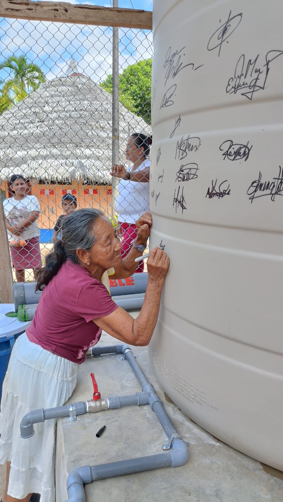 Construction, implementation, and dedication of the new potable rainwater catchment system with chlorination and filtration systems; consisting of Three 2500L water holding tanks each on a concrete platform, with corrugated metal roof, for the community of Betsaida.