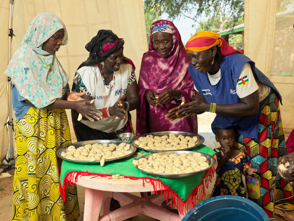 Women make mandazi, a form of sweetbread, at the International Medical Corps WGSS in Birao.