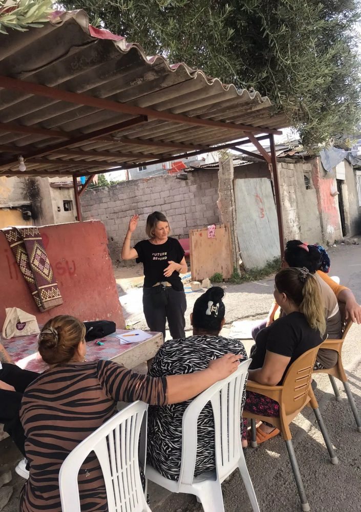 “A few months later, we noticed that at every camp there is a leader woman,” Kılıç recalled. (Informal community leaders are a common presence in refugee settings, where people designate trusted community members to advocate for their interests, build vital relationships, and let them know who’s safe to trust.) HASUDER’s team began cultivating relationships with these community leaders, calling them before driving to a camp site to let them know what services would be available, answer questions, and cultivate a relationship.